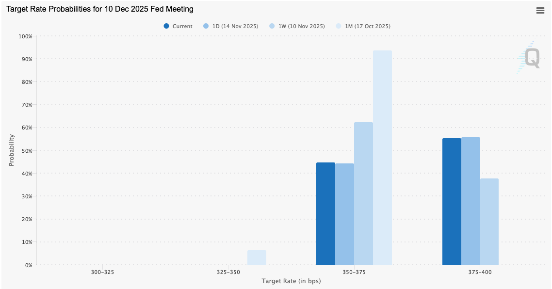 Bu veri eksikliğine ek olarak CME Group'un FedWatch Tool verileri, piyasaların Fed'in 10 Aralık'taki bir sonraki toplantısında faiz oranlarını %0,25 artıracağına artık ikna olmadığını gösteriyor.
