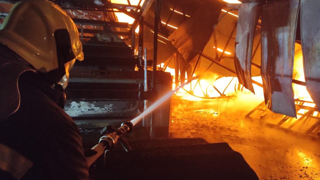 Ateşte fabrika halıları, halıların yapımında kullanılan malzemeler ve iç içe makineler hasar gördü.